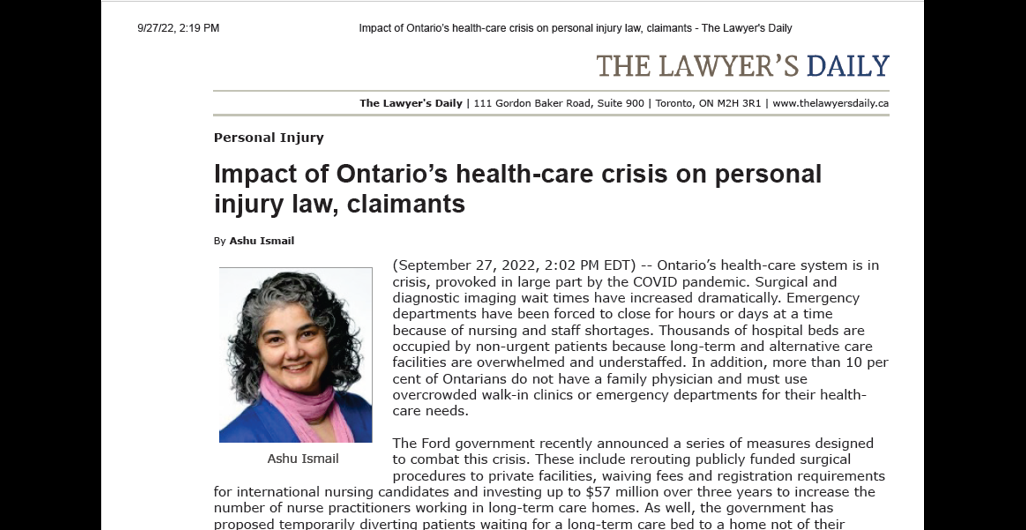 On September 27th, 2022, The Lawyer's Daily published an important article by Campisi personal injury lawyer Ashu Ismail.