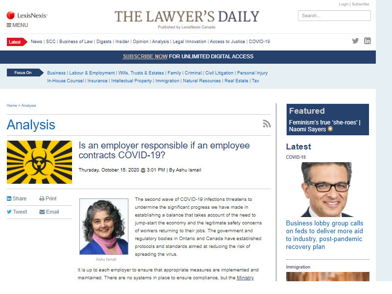 The second wave of COVID-19 infections threatens to undermine the significant progress we have made in establishing a balance that takes account of the need to jump-start the economy and the legitimate safety concerns of workers returning to their jobs. The government and regulatory bodies in Ontario and Canada have established protocols and standards aimed at reducing the risk of spreading the virus.